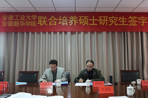 最后,馬鳳余與鄭明東分別代表安徽新華學(xué)院和安徽工業(yè)大學(xué)簽訂了合作協(xié)議。