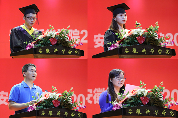 校長石秀和教授在會(huì)上深情致辭。他代表學(xué)校全體師生員工向圓滿完成大學(xué)四年學(xué)業(yè),即將踏上全新征途的2015屆畢業(yè)生們表示衷心的祝賀。他說,大學(xué)是人生中最關(guān)鍵的旅程,2015屆畢業(yè)生四年來在這里成人、成長、成才,是學(xué)校的驕傲;未來,母校將圍繞建設(shè)地方應(yīng)用型高水平大學(xué)的目標(biāo),全面深化教育教學(xué)改革,不斷提高人才質(zhì)量,為社會(huì)的發(fā)展提供更有利的人才支撐,母校更將成為學(xué)生的驕傲!石秀和希望畢業(yè)生們?cè)谶@個(gè)全球化浪潮洶涌而來,各種思潮相互碰觸的變革年代,能夠與時(shí)俱進(jìn),緊緊跟上時(shí)代的潮流,勇敢克服生活的困境以外,更能夠堅(jiān)守自我,做一個(gè)新時(shí)代背景下大寫的人,做一個(gè)對(duì)中華文明的傳承與進(jìn)步起到推動(dòng)作用的新青年。希望畢業(yè)生們要珍惜青春,努力奮斗,孜孜不倦學(xué)習(xí),勤勉奮發(fā)干事,用有限的青春去創(chuàng)造無限的可能,用實(shí)際行動(dòng)架起理想與現(xiàn)實(shí)之間的橋梁;要不斷創(chuàng)新,爭當(dāng)創(chuàng)客,不斷打破思維的慣性,讓創(chuàng)新融入畢業(yè)生們的血液,用創(chuàng)意改變世界的未來;要敢于負(fù)責(zé),勇于擔(dān)當(dāng),畢業(yè)生們只有承擔(dān)起自己應(yīng)當(dāng)承擔(dān)的社會(huì)責(zé)任、職業(yè)責(zé)任、家庭責(zé)任,才能實(shí)現(xiàn)自身良好生存與自由發(fā)展,才能收獲成功的事業(yè)與美滿的家庭,才能在未來的發(fā)展道路上健步如飛,走的更快、更好、更遠(yuǎn);要愛崗敬業(yè),甘于奉獻(xiàn),始終保持昂揚(yáng)向上的工作激情,勇于挑起重?fù)?dān),敢于奮勇爭先,廉潔奉公,吃苦耐勞,在勞動(dòng)中發(fā)現(xiàn)廣闊的天地,在勞動(dòng)中體現(xiàn)價(jià)值、展現(xiàn)風(fēng)采、感受快樂,以實(shí)際行動(dòng)服務(wù)社會(huì),報(bào)效國家。最后,石秀和衷心祝愿每一位畢業(yè)生都能夠前程似錦,幸福平安,希望同學(xué)們常回家看看,一如既往地關(guān)注母校,關(guān)心校友。新華,永遠(yuǎn)是同學(xué)們停泊的港灣,是同學(xué)們堅(jiān)強(qiáng)的后盾和前進(jìn)的動(dòng)力!