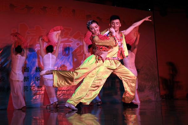 本次“鼓鄉(xiāng)情韻”高雅藝術(shù)進(jìn)校園活動(dòng)由安徽省教育廳主辦,安徽新華學(xué)院承辦。滁州學(xué)院花鼓藝術(shù)團(tuán)的藝術(shù)家們?yōu)榘不招氯A學(xué)院師生帶來了一場(chǎng)精彩絕倫的視聽盛宴,不僅讓廣大師生零距離感受到了鳳陽花鼓的獨(dú)特藝術(shù)魅力,更豐富了學(xué)生的精神生活,營造出和諧的校園文化氣氛。
